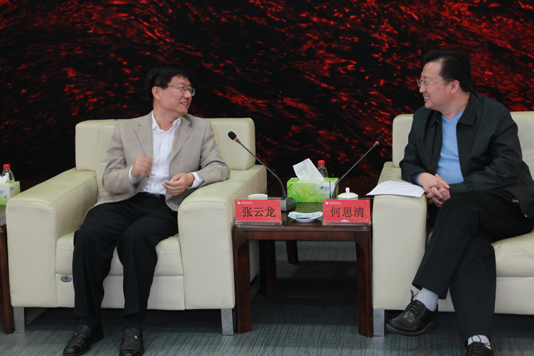 座谈会上,何思清对我校的到访表示热烈的欢迎。裴新锋简要介绍了学校的发展历史,并着重从办学特色与定位、名校工程建设、产学研结合、社会服务等方面介绍了学校近些年来的发展建设情况。党委办公室主任韩文涛介绍了学校“十三五”规划编制工作的总体进展情况。