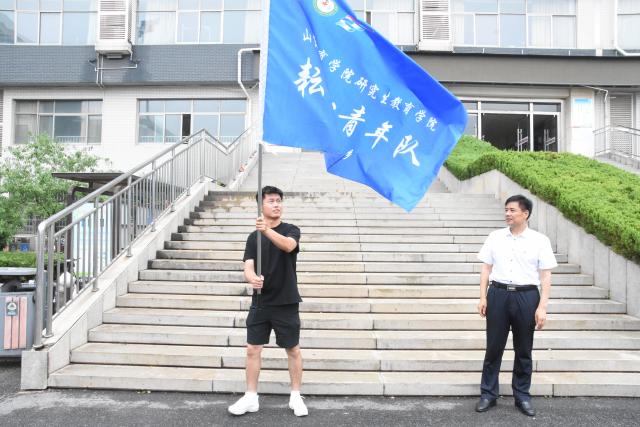 6月27日,研究生教育学院举行2025年大学生暑期“三下乡”社会实践活动出征仪式。山东体育学院党委委员、副院长刘敏为出征团队授旗,鼓励师生们在实践中勇担使命、砥砺前行。