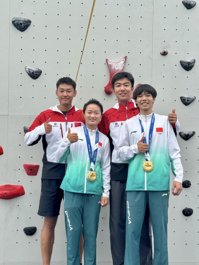在成都世运会与贵阳攀岩世界杯上连夺金牌的国家攀岩队身后,闪耀着山东体育学院体能训练团队的身影——2023级运动训练专业研究生王好、2025级体育教学专业研究生吴浩然、2023级运动训练专业杨枫、2024级体育教育训练学专业谭煌鑫,他们以卓越的专业能力,成为中国体育健儿最硬核的支撑。其中,王好、吴浩然担任速度组核心体能教练,杨枫、谭煌鑫担任国家飞碟射击队体能教练。